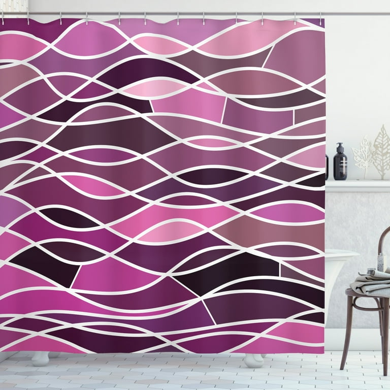 Retro Shower Curtain Vintage Wavy Stripes With Stained Glass Design Colorful Abstract Mosaic Illustration Fabric Bathroom Set With Hooks 69w X 70l Inches Multicolor By Ambesonne Walmart Com